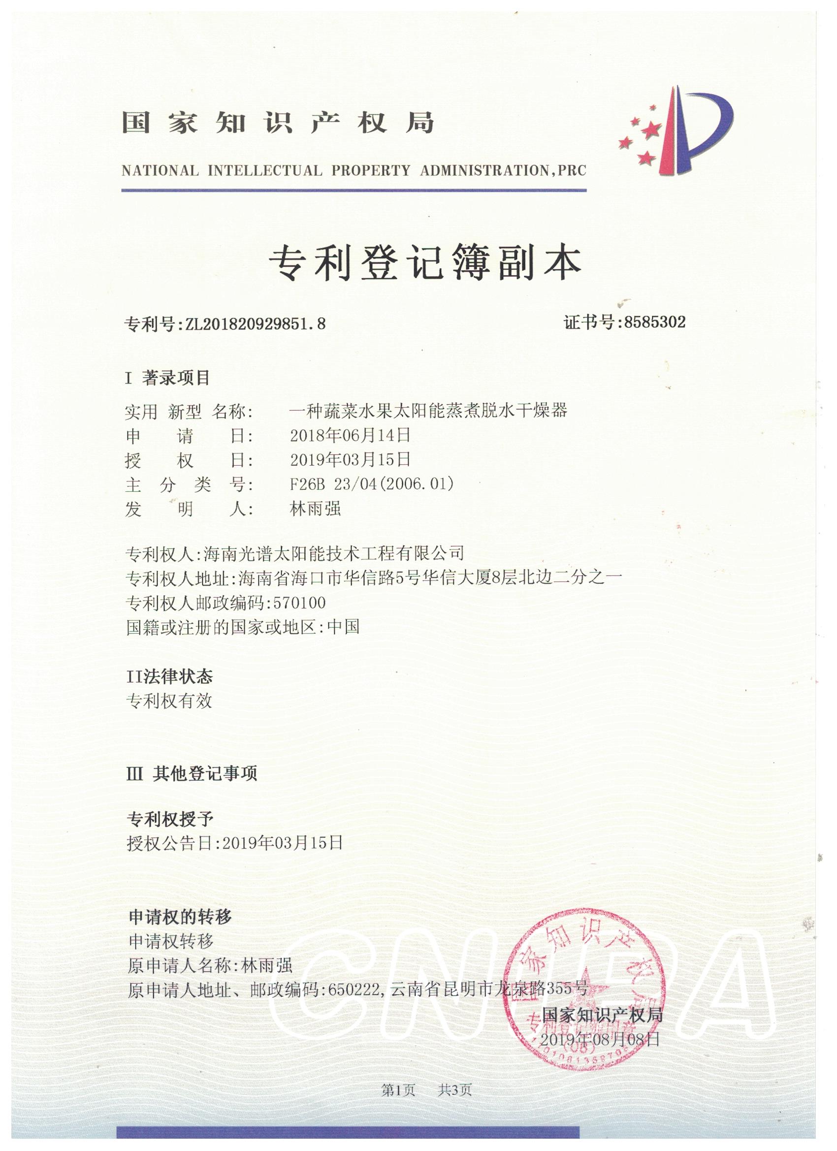 【喜報(bào)】熱烈祝賀海南光譜公司榮獲國家發(fā)明專利授權(quán),技術(shù)實(shí)力獲認(rèn)可!